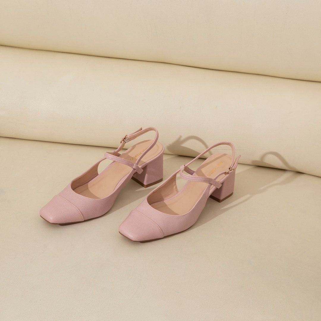 Giày Cao Gót Dáng Slingback Mũi Nhọn Đế Vuông MH16 Hồng