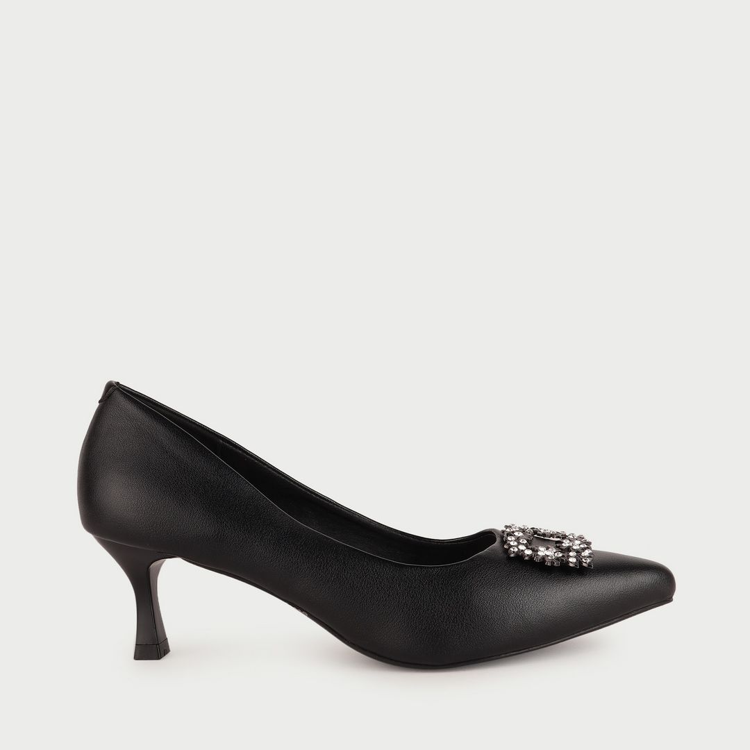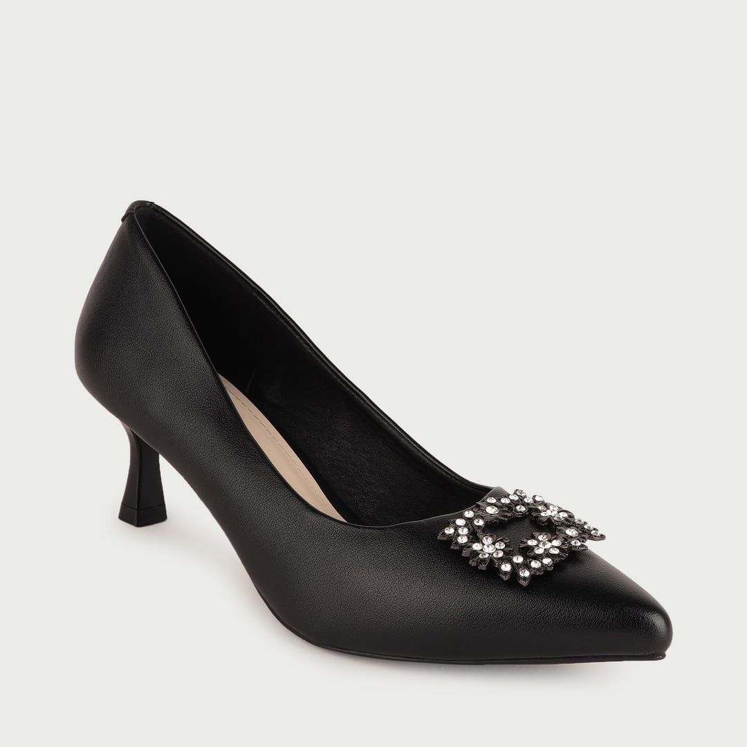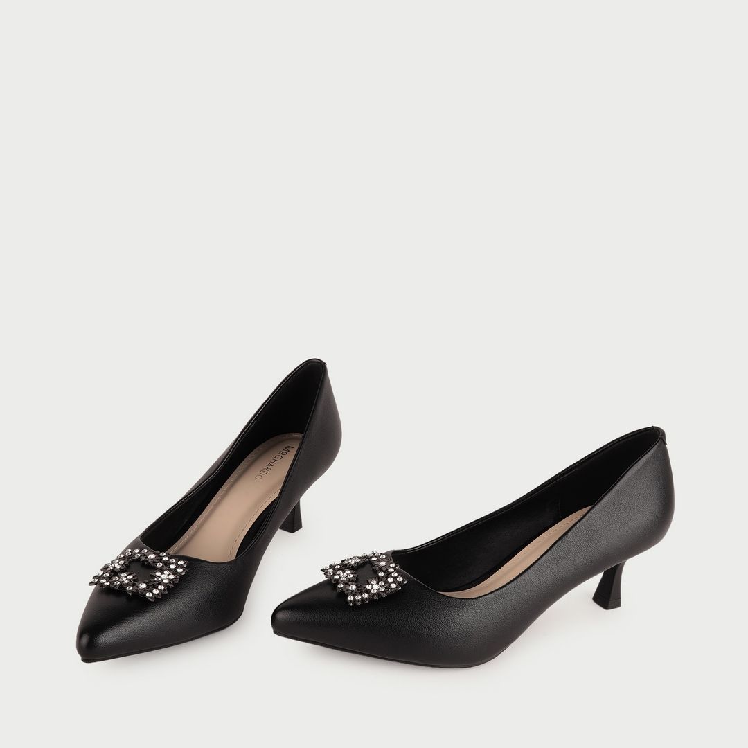 Giày Cao Gót Nữ Mũi Nhọn Phối Khóa Cao Cấp PA-501 Đen